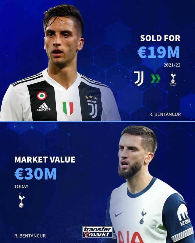 德转列近年离开尤文后身价上涨球员:赫伊森、库卢、罗梅罗等